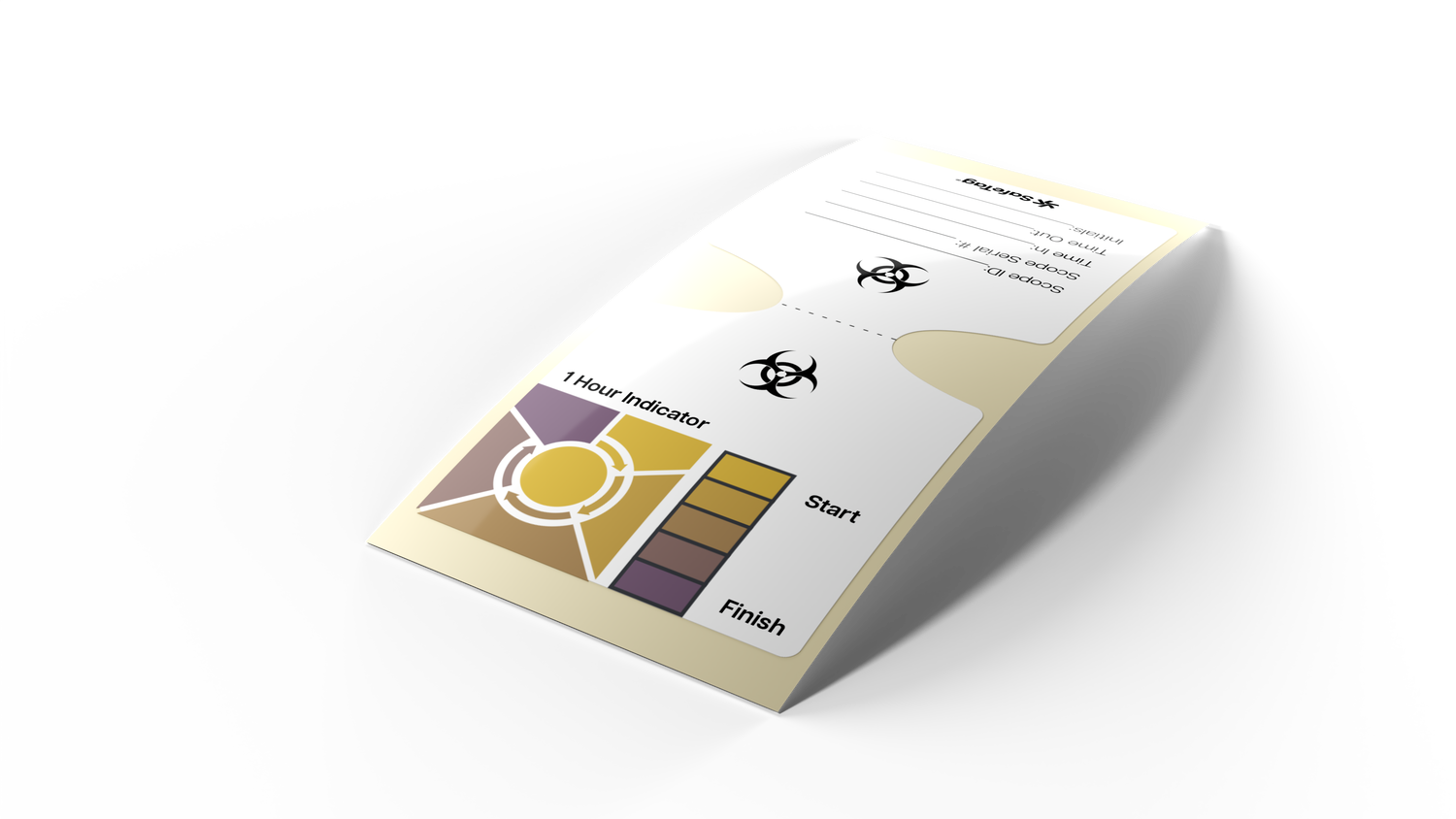 SafeTag visually enhances decontamination compliance through time-based color changes.
